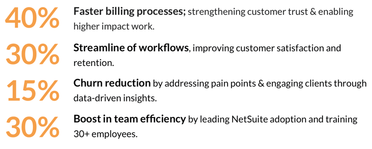 30% Boost in team efficiency by leading NetSuite adoption and training 30+ employees.